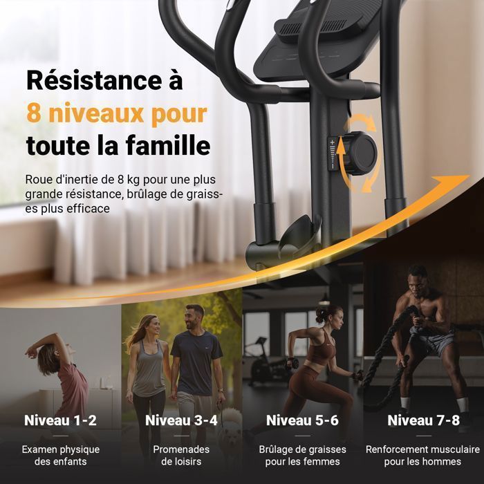 – Produktname: Ellipsentrainer für zu Hause, Merach, 8 Widerstandsstufen, manuelle Einstellung, mit Monitor, verbundene APP