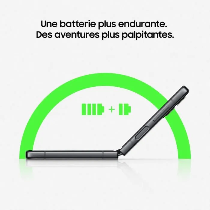 Der 3700-mAh-Akku ist mit kabellosem Laden kompatibel und sorgt für zuverlässige Autonomie im Alltag. Das Galaxy Z Flip4 ist IPX8-zertifiziert und wasserbeständig. Die Sicherheit wird durch die Gesichtserkennung und den seitlich angebrachten Fingerabdruckleser erhöht.